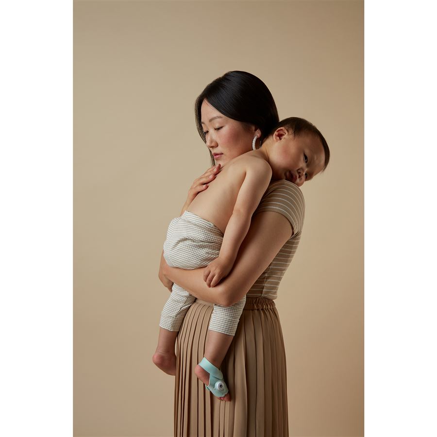 Dieťa môže mať oblečené pyžamo alebo zavinovačku. Látkové ponožky Owlet majú nízky profil a zmestia sa pod akékoľvek oblečenie či ponožku.